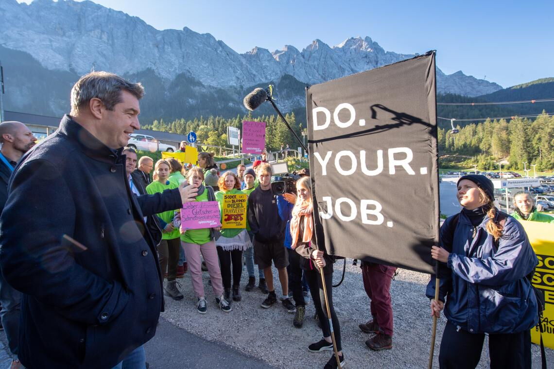 Oben angekommen: Söder besucht auf seiner „Klimatour“ im September die Zugspitze, um sich über das Tauen der Gletscher zu informieren.