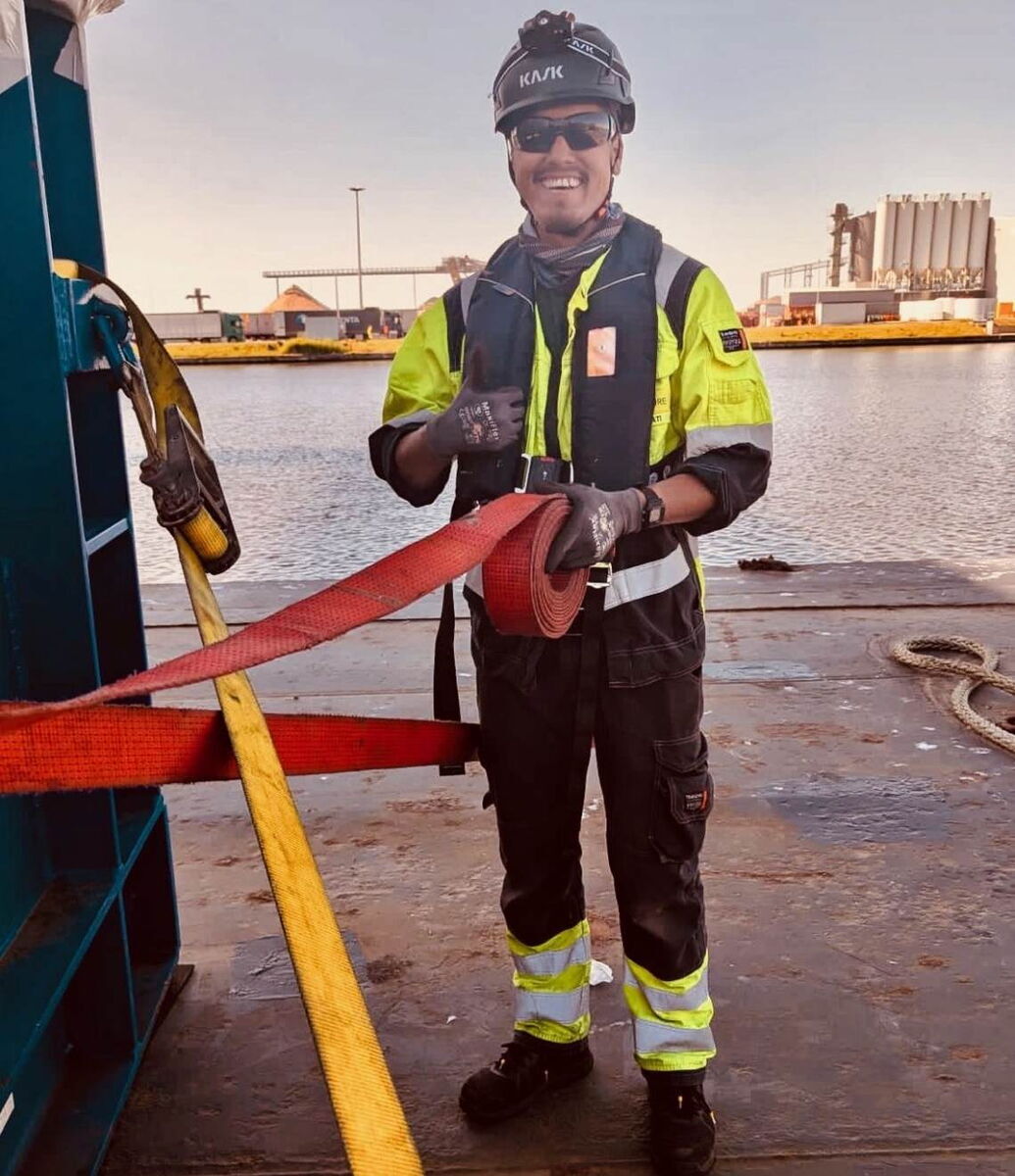 Hawil Magarati auf einem Offshore-Windrad in der Nordsee: Der gebürtige Nepalese geht in sein letztes Ausbildungsjahr.