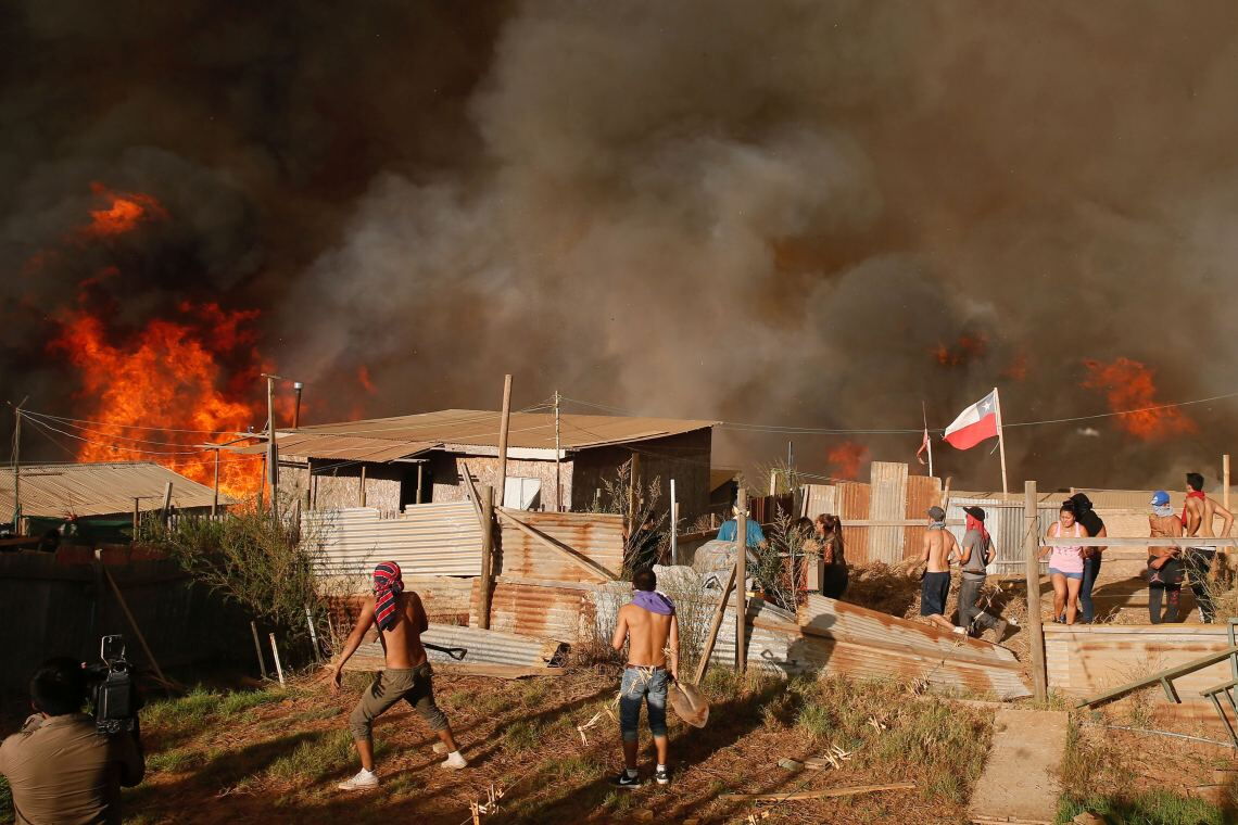 Die Anwohner haben sich mit Schaufeln bewaffnet, aber gegen die meterhohen Flammen, die im März 2017 gleich hinter ihrer Siedlung aus dem Busch schlagen, können sie damit kaum etwas ausrichten. Die Waldbrände, die zu dieser Zeit in Chile wüten, zählen zu den heftigsten seit Langem.