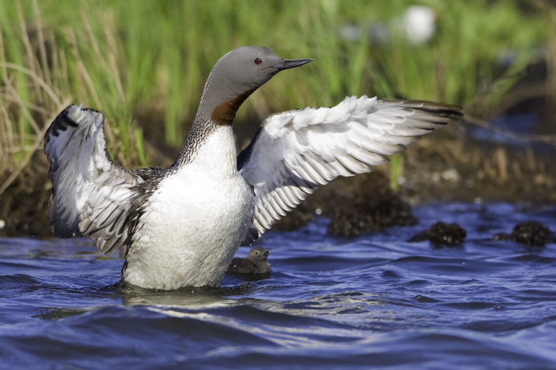 Sterntaucher mit Küken: Die Vögel brüten in der Tundra und Taiga. Die Deutsche Bucht ist ein wichtiges Rastgebiet für sie.