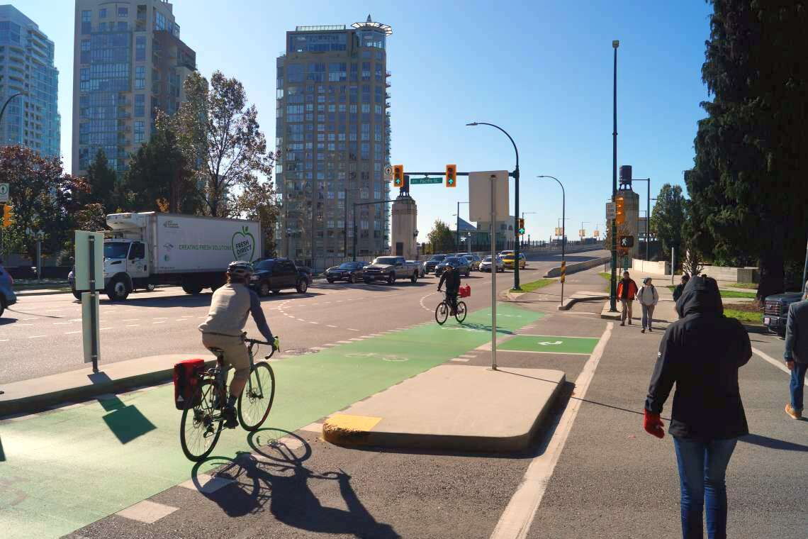 Die Busse im Stadtgebiet fahren mit Oberleitung längst elektrisch, einige der Fähren rings um die Downtown-Halbinsel haben Elektromotoren. Dazu durchziehen breite Fahrradstraßen die Stadt. An Hauptstraßen wurde dem Autoverkehr dafür eine Spur weggenommen. Zwar dominieren die Pick-ups mit brusthohem Kühlergrill noch immer das Bild, aber mehr und mehr Radler flitzen dazwischen umher.