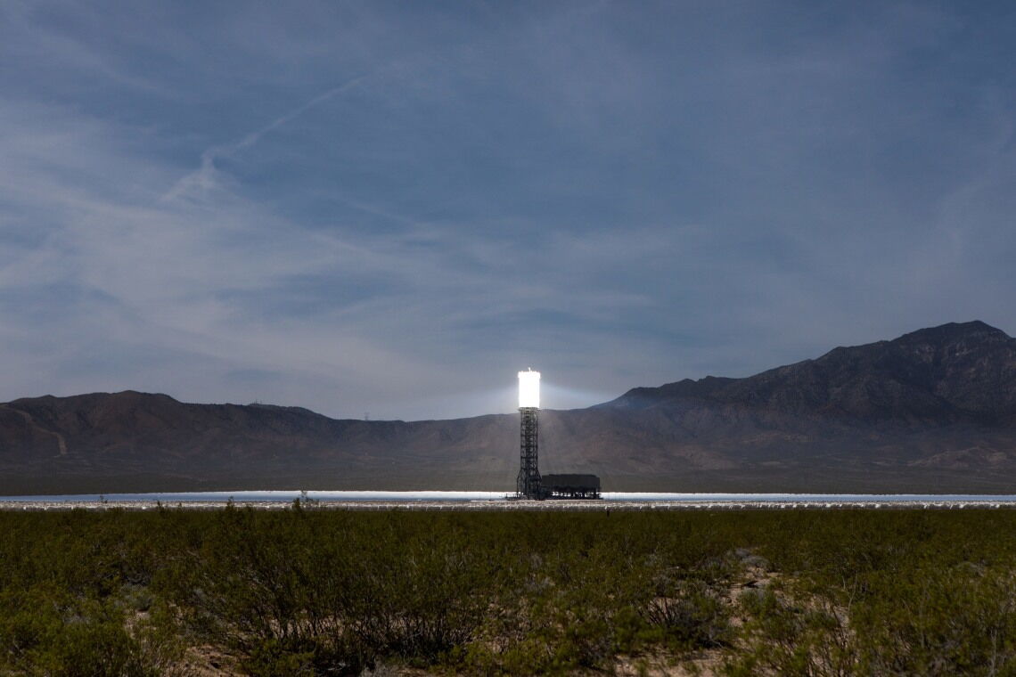 Das größte solarthermisches Kraftwerk ist Ivanpah an der Grenze von Kalifornien zu Nevada. Hier konzentrieren mehr als 300.000 Heliostaten Sonnenlicht und richten es auf drei je 139 Meter hohe Türme, wo das Licht in Wärme (Dampf) umgewandelt wird. Damit werden Turbinen und Generatoren am Boden betrieben, die zusammen auf 377 Megawatt kommen. Die Fläche, die das Kraftwerk belegt, ist in etwa so groß wie 1300 Fußballplätze
