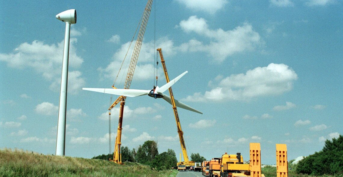 Windradmontage 1997 in Ostfriesland: Tausende alter Anlagen werden in den kommenden Jahren abgebaut. Dabei fällt viel Recyclingmaterial an.